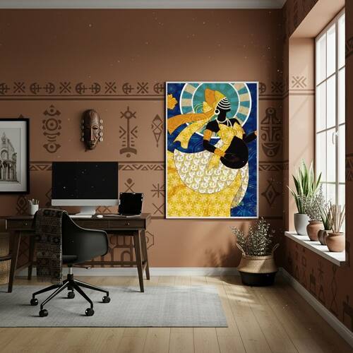 Quadro Decorativo Oxum Divindade da Prosperidade - 70x50cm - Cor: Moldura Branca
