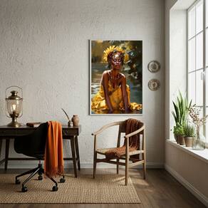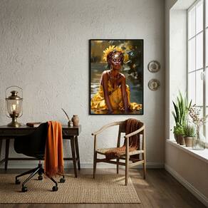 Quadro Decorativo Oxum Mulher Africana - 70x50cm - Cor: Moldura Branca