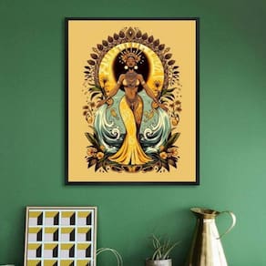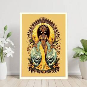 Quadro decorativo oxum - rainha água doce 60x48cm Moldura: madeira preta Informações do produto tire todas as suas dúvidas no descritivo abaixo: decoração para quarto, sala, cozinha, escritório, área gourmet e muito mais. Chega de paredes vazias medidas - cada peça tem 60x48cm . Material do papel - papel fotográfico brilhante de altíssima resolução acabamento - todos os quadros são acompanhados de vidro para proteção da imagem. - moldura em madeira maciça na cor preta ou branca conforme produto escolhido e pendurador. - paspatur branco com 7cm de largura - os quadros são embalados de forma segura com plástico bolha com camada dupla de acordo com o tamanho dos quadros. Garantia - garantia de 3 meses. Meu quadro chegou. Como posso fixá-lo Você precisa apenas de um martelo e um prego, pois os quadros já vão acompanhados de penduradores. Esta é a forma mais indicada. Como posso limpar meu quadro A limpeza é feita como um móvel comum da sua casa. Apenas um pano seco ou espanador são suficientes para tal