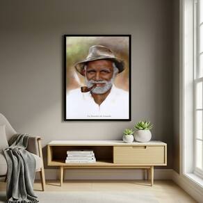 Quadro Decorativo Pai Benedito de Aruanda - 70x50cm - Cor: Moldura Branca