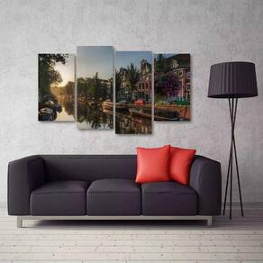 Quadro Decorativo Paisagem Amsterdã Lago Em Tecido 4 Peças 1