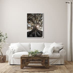 Quadro Decorativo Paisagem Árvore e Raios de Sol com 1 Tela Cm ou Cm de Parede para Escritório Banhe Branco