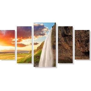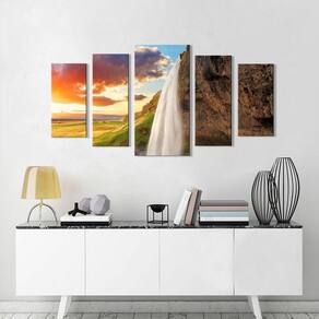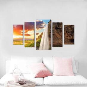 Quadro Decorativo Paisagem Cachoeira Na Montanha 5 Peças Impressão digital alta definição em tecido canvas Esticado em bastidor de madeira MDF com os grampos na parte traseira do quadro com as laterais acompanhando a imagem. Medidas 5 peças na medida cada peça contém Peça 1 20 cm largura por 40 cm altura Peça 2 20 cm largura por 50 cm altura Peça 3 30 cm largura por 60 cm altura Peça 4 20 cm largura por 50 cm altura Peça 5 20 cm largura por 40 cm altura Tamanho total do kit considerando 3 cm entre as peças 60 cm altura por 122 cm largura Os quadros trazem ao ambiente harmonia e alegria. Os quadros decorativos da arte quadro é ideal para decorar seu espaço deixando o ambiente mais moderno e agradável e no seu estilo Tecido canvas - o tecido canvas é um material especial para impressão 100% algodão, com uma preparação especial resinada anti-mofo. Apropriada para impressões de obras de artes e impressão de fotos em tela, muito Utilizado em exposições nos museus. A preparação do tecido encapsula o pigmento da tinta em uma camada protetora proporcionando resistência, o resultado são cores mais vivas e vibrantes sem perder a textura do tecido. É um material ecologicamente correto.