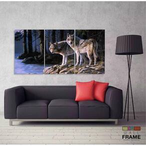 Quadro Decorativo Paisagem Lobos Escritório Tecido 3 Peças 1