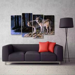 Quadro Decorativo Paisagem Lobos Escritório Tecido 4 Peças 1