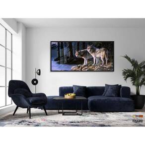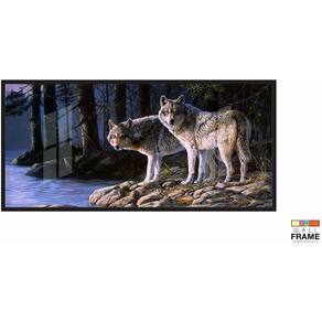 Quadro Decorativo Paisagem Lobos Escritório130x60 Moldura Preta 2x2