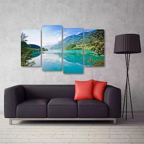 Quadro Decorativo Paisagem Montanha Lago Em Tecido 4 Peças 1