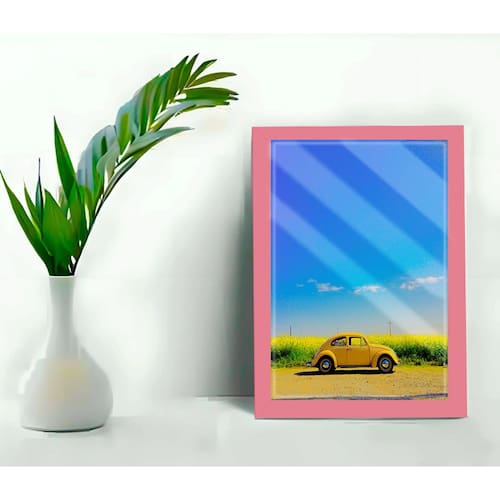 Quadro Decorativo Paisagem Vw Fusc C/ Moldura e Vidro 33x25cm - Cor: Rosa