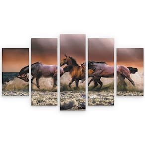 Quadro Decorativo Paisagens de cavalos 108x65cm em mdf