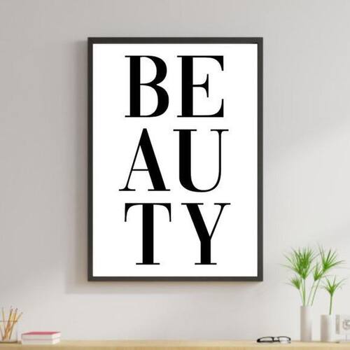 Quadro Decorativo Palavra Beauty 45X34Cm Moldura Preta