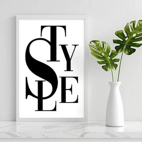 Quadro decorativo palavra style 45x34cm Moldura: madeira branca Informações do produto Decoração para quarto, sala, cozinha, escritório, área gourmet e muito mais. Chega de paredes vazias. Medidas - cada peça tem 45x34cm a3 . Material do papel - papel fotográfico brilhante de altíssima resolução Acabamento - todos os quadros são acompanhados de uma película de acetato para proteção da imagem. - Os quadros são embalados de forma segura com plástico bolha com camada dupla de acordo com o tamanho dos quadros. - de 3 meses. Meu quadro chegou. Como posso fixá-lo Você precisa apenas de um martelo e um prego, pois os quadros já vão acompanhados de penduradores. Esta é a forma mais indicada. Caso prefira, você pode utilizar uma fita dupla face neste caso, sugerimos de alta qualidade para evitar que descole e seu quadro caia . Como posso limpar meu quadro A limpeza é feita como um móvel comum da sua casa. Apenas um pano seco ou espanador são suficientes para tal Ean: 7895142190152