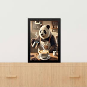Quadro decorativo panda fazendo café 33x24cm Cor: moldura preta Informações do produto tire todas as suas dúvidas no descritivo abaixo: decoração para quarto, sala, cozinha, escritório, área gourmet e muito mais. Chega de paredes vazias medidas - cada peça tem 33x24cm a4 . Material do papel - papel fotográfico brilhante de altíssima resolução acabamento - todos os quadros são acompanhados de uma película de acetato para proteção da imagem. - os quadros são embalados de forma segura com plástico bolha com camada dupla de acordo com o tamanho dos quadros. - de 3 meses. Meu quadro chegou. Como posso fixá-lo Você precisa apenas de um martelo e um prego, pois os quadros já vão acompanhados de penduradores. Esta é a forma mais indicada. Caso prefira, você pode utilizar uma fita dupla face neste caso, sugerimos de alta qualidade para evitar que descole e seu quadro caia . Como posso limpar meu quadro A limpeza é feita como um móvel comum da sua casa. Apenas um pano seco ou espanador são suficientes para tal Marca: Não Informado