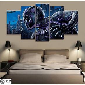 Quadro decorativo Pantera Negra 5 peças 130x65 em tecido