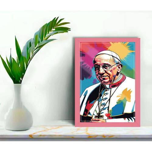Descrição do produto: Dê um toque de inspiração e modernidade ao seu espaço com este quadro decorativo do Papa Francisco em estilo Pop Art! Com dimensões de 33x25 cm, ele é perfeito para adicionar um toque único e vibrante à sua sala ou estúdio. Feito com papel de alta qualidade e protegido por vidro, este quadro garante durabilidade e um acabamento sofisticado. Ideal para admiradores do Papa Francisco e amantes de arte contemporânea. Benefícios:Durabilidade: Moldura resistente e vidro que protege contra poeira e danosEstilo: Adiciona beleza e personalidade ao seu espaço, criando um ambiente perfeito.Facilidade: Pronto para pendurar, sem necessidade de montagem Características:01 Peça(s)Com vidro.Moldura feita de madeira maciça disponíveis nas cores:Preta, Branca, Rosa e Azul TurquesaImagem A4 de alta qualidade protegida contra umidade. Dimensões:Moldura: 25 cm L. 33,7 cm AlturaImagem: 21 cm L. 30 cm AlturaVidro: 0,3 mm Espessura Marca: Estação Vest