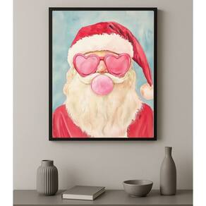Quadro Decorativo Papai Noel Bubble Gun 33x24cm - com vidro - Cor: Moldura preta