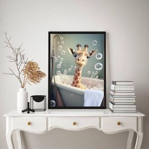 Quadro decorativo para banheiro- girafinha 24x18cm Moldura: madeira preta Informações do produto tire todas as suas dúvidas no descritivo abaixo: decoração para quarto, sala, cozinha, escritório, área gourmet e muito mais. Chega de paredes vazias medidas - cada peça tem 24x18cm a5 . Material do papel - papel fotográfico brilhante de altíssima resolução acabamento - todos os quadros são acompanhados de uma película de acetato para proteção da imagem. - os quadros são embalados de forma segura com plástico bolha com camada dupla de acordo com o tamanho dos quadros. Garantia - garantia de 3 meses. Meu quadro chegou. Como posso fixá-lo Você precisa apenas de um martelo e um prego, pois os quadros já vão acompanhados de penduradores. Esta é a forma mais indicada. Caso prefira, você pode utilizar uma fita dupla face neste caso, sugerimos de alta qualidade para evitar que descole e seu quadro caia . Como posso limpar meu quadro A limpeza é feita como um móvel comum da sua casa. Apenas um pano seco ou espanador são suficientes para tal Ean: 7892467721795