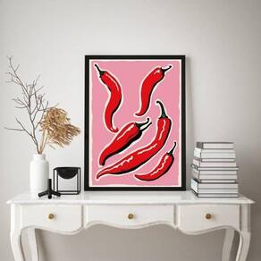 Quadro decorativo para cozinha pimentas 45x34cm - com vidro Cor: moldura preta Informações do produto tire todas as suas dúvidas no descritivo abaixo: decoração para quarto, sala, cozinha, escritório, área gourmet e muito mais. Chega de paredes vazias medidas - cada peça tem 45x34cm a3 . Material do papel - papel fotográfico brilhante de altíssima resolução acabamento - todos os quadros são acompanhados de vidro para proteção da imagem. - moldura em madeira maciça na cor preta ou branca conforme produto escolhido e pendurador . - os quadros são embalados de forma segura com plástico bolha com camada dupla de acordo com o tamanho dos quadros. - de 3 meses. Meu quadro chegou. Como posso fixá-lo Você precisa apenas de um martelo e um prego, pois os quadros já vão acompanhados de penduradores. Esta é a forma mais indicada. Como posso limpar meu quadro A limpeza é feita como um móvel comum da sua casa. Apenas um pano seco ou espanador são suficientes para tal Marca: Não Informado