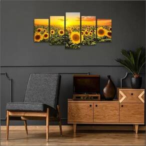 Quadro Decorativo Para Sala Amanhecer Plantação De Girassol