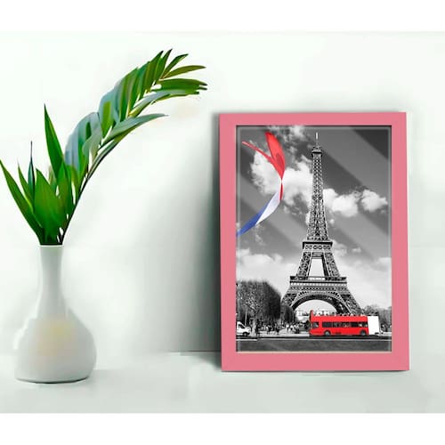 Quadro Decorativo Paris Torre Eiffel Sala + Vidro 33x25 A4 - Cor: Rosa