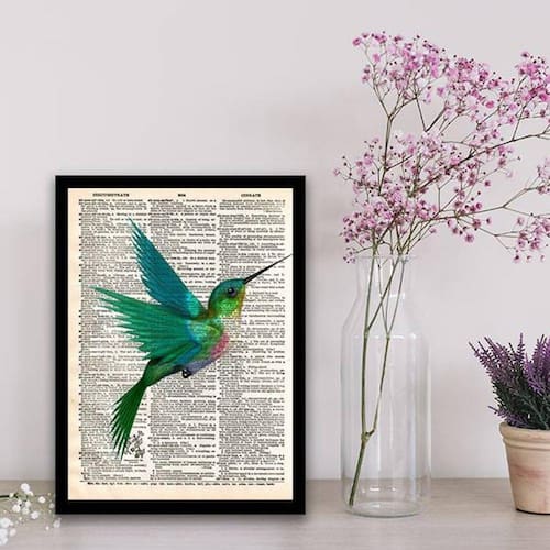 Quadro Decorativo Passarinho Beija Flor - Tamanho: A4 (20 x 30) / Acabamento: Película de acetato / Moldura: Madeira preta