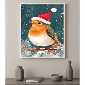 Quadro Decorativo Passarinho De Natal 24x18cm - com vidro - Cor: Moldura preta