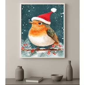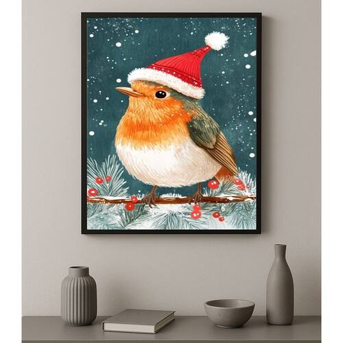 Quadro Decorativo Passarinho De Natal 33x24cm - Cor: Moldura preta