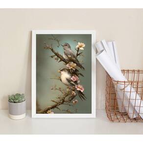 Quadro decorativo passarinhos flores cerejeira 45x34cm - com vidro Moldura: madeira branca Informações do produto tire todas as suas dúvidas no descritivo abaixo: decoração para quarto, sala, cozinha, escritório, área gourmet e muito mais. Chega de paredes vazias medidas - cada peça tem 45x34cm a3 . Material do papel - papel fotográfico brilhante de altíssima resolução acabamento - todos os quadros são acompanhados de vidro para proteção da imagem. - moldura em madeira maciça na cor preta ou branca conforme produto escolhido e pendurador . - os quadros são embalados de forma segura com plástico bolha com camada dupla de acordo com o tamanho dos quadros. Garantia - garantia de 3 meses. Meu quadro chegou. Como posso fixá-lo Você precisa apenas de um martelo e um prego, pois os quadros já vão acompanhados de penduradores. Esta é a forma mais indicada. Como posso limpar meu quadro A limpeza é feita como um móvel comum da sua casa. Apenas um pano seco ou espanador são suficientes para tal Ean: 7893717328962