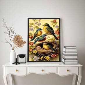 Quadro decorativo passarinhos no ninho 24x18cm - com vidro Moldura: madeira branca Informações do produto tire todas as suas dúvidas no descritivo abaixo: decoração para quarto, sala, cozinha, escritório, área gourmet e muito mais. Chega de paredes vazias medidas - cada peça tem 24x18cm a5 . Material do papel - papel fotográfico brilhante de altíssima resolução acabamento - todos os quadros são acompanhados de vidro para proteção da imagem. - moldura em madeira maciça na cor preta ou branca conforme produto escolhido e pendurador . - os quadros são embalados de forma segura com plástico bolha com camada dupla de acordo com o tamanho dos quadros. Garantia - garantia de 3 meses. Meu quadro chegou. Como posso fixá-lo Você precisa apenas de um martelo e um prego, pois os quadros já vão acompanhados de penduradores. Esta é a forma mais indicada. Como posso limpar meu quadro A limpeza é feita como um móvel comum da sua casa. Apenas um pano seco ou espanador são suficientes para tal Ean: 7895952467222
