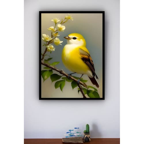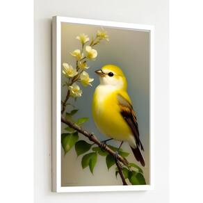 Quadro Decorativo Pássaro Canário Amarelo - 70x50cm - Cor: Moldura Branca