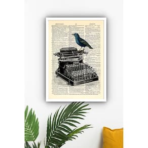 Quadro Decorativo Pássaro Máquina de Escrever - 70x50cm - Cor: Moldura Branca