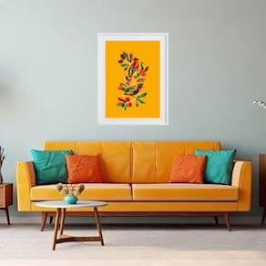 Quadro Decorativo Pássaros e Frutas - 60x48cm - Moldura: Madeira preta
