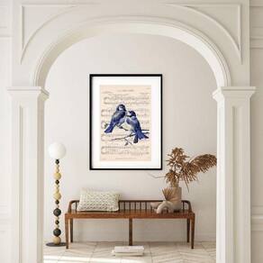 Quadro decorativo pássaros partitura - 60x48cm Moldura: madeira preta Informações do produto tire todas as suas dúvidas no descritivo abaixo: decoração para quarto, sala, cozinha, escritório, área gourmet e muito mais. Chega de paredes vazias medidas - cada peça tem 60x48cm . Material do papel - papel fotográfico brilhante de altíssima resolução acabamento - todos os quadros são acompanhados de vidro para proteção da imagem. - moldura em madeira maciça na cor preta ou branca conforme produto escolhido e pendurador. - paspatur branco com 7cm de largura - os quadros são embalados de forma segura com plástico bolha com camada dupla de acordo com o tamanho dos quadros. Garantia - garantia de 3 meses. Meu quadro chegou. Como posso fixá-lo Você precisa apenas de um martelo e um prego, pois os quadros já vão acompanhados de penduradores. Esta é a forma mais indicada. Como posso limpar meu quadro A limpeza é feita como um móvel comum da sua casa. Apenas um pano seco ou espanador são suficientes para tal