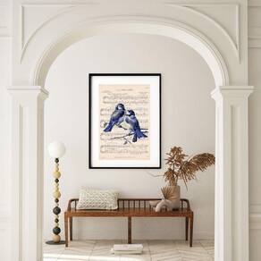 Quadro Decorativo Pássaros Partitura - 60X48Cm
