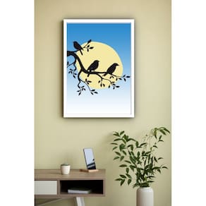 Quadro Decorativo Pássaros Silhueta - 70x50cm - Cor: Moldura Branca
