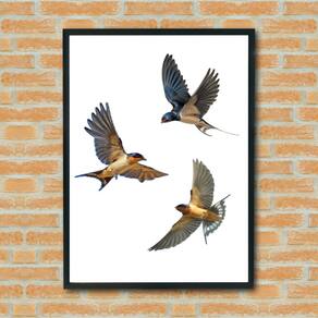 Quadro Decorativo Pássaros Voando - 70x50cm - Cor: Moldura Preta