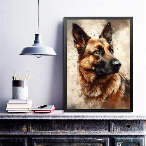 Quadro decorativo pastor alemão aquarela 45x34cm - com vidro Moldura: madeira branca Informações do produto tire todas as suas dúvidas no descritivo abaixo: decoração para quarto, sala, cozinha, escritório, área gourmet e muito mais. Chega de paredes vazias medidas - cada peça tem 45x34cm a3 . Material do papel - papel fotográfico brilhante de altíssima resolução acabamento - todos os quadros são acompanhados de vidro para proteção da imagem. - moldura em madeira maciça na cor preta ou branca conforme produto escolhido e pendurador . - os quadros são embalados de forma segura com plástico bolha com camada dupla de acordo com o tamanho dos quadros. Garantia - garantia de 3 meses. Meu quadro chegou. Como posso fixá-lo Você precisa apenas de um martelo e um prego, pois os quadros já vão acompanhados de penduradores. Esta é a forma mais indicada. Como posso limpar meu quadro A limpeza é feita como um móvel comum da sua casa. Apenas um pano seco ou espanador são suficientes para tal Ean: 7894477510086