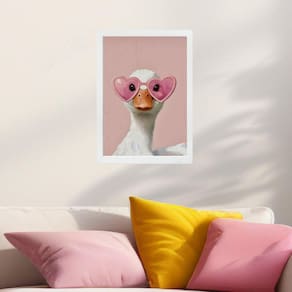 Quadro decorativo patinho com óculos de coração 24x18cm - com vidro Cor: moldura preta Informações do produto tire todas as suas dúvidas no descritivo abaixo: decoração para quarto, sala, cozinha, escritório, área gourmet e muito mais. Chega de paredes vazias medidas - cada peça tem 24x18cm a5 . Material do papel - papel fotográfico brilhante de altíssima resolução acabamento - todos os quadros são acompanhados de vidro para proteção da imagem. - moldura em madeira maciça na cor preta ou branca conforme produto escolhido e pendurador . - os quadros são embalados de forma segura com plástico bolha com camada dupla de acordo com o tamanho dos quadros. - de 3 meses. Meu quadro chegou. Como posso fixá-lo Você precisa apenas de um martelo e um prego, pois os quadros já vão acompanhados de penduradores. Esta é a forma mais indicada. Como posso limpar meu quadro A limpeza é feita como um móvel comum da sua casa. Apenas um pano seco ou espanador são suficientes para tal Marca: Não Informado Ean: 7908991734788