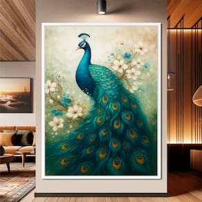 Quadro Decorativo Pavão Estilo Pintura Moldura Preta - 84x54cm -