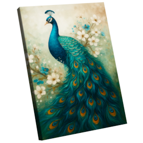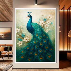 Quadro Decorativo Pavão Estilo Pintura Borda Infinita - 118x78cm -