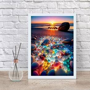Quadro decorativo pedras coloridas praia por do sol 33x24cm - com vidro Moldura: madeira branca Informações do produto tire todas as suas dúvidas no descritivo abaixo: decoração para quarto, sala, cozinha, escritório, área gourmet e muito mais. Chega de paredes vazias medidas - cada peça tem 33x24cm a4 . Material do papel - papel fotográfico brilhante de altíssima resolução acabamento - todos os quadros são acompanhados de vidro para proteção da imagem. - moldura em madeira maciça na cor preta ou branca conforme produto escolhido e pendurador . - os quadros são embalados de forma segura com plástico bolha com camada dupla de acordo com o tamanho dos quadros. Garantia - garantia de 3 meses. Meu quadro chegou. Como posso fixá-lo Você precisa apenas de um martelo e um prego, pois os quadros já vão acompanhados de penduradores. Esta é a forma mais indicada. Como posso limpar meu quadro A limpeza é feita como um móvel comum da sua casa. Apenas um pano seco ou espanador são suficientes para tal