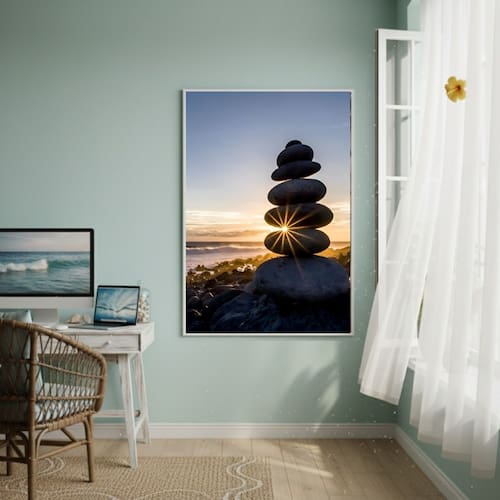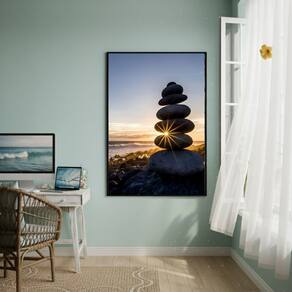 Quadro Decorativo Pedras Empilhadas-70x50cm - Cor: Moldura Preta