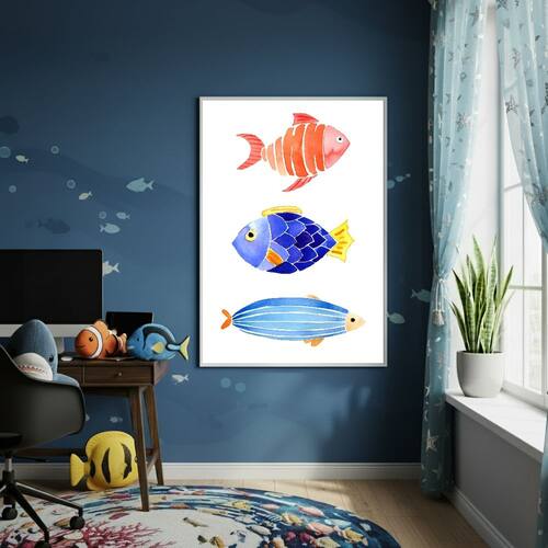 Quadro Decorativo Peixes Coloridos 70x50cm Mold Branca