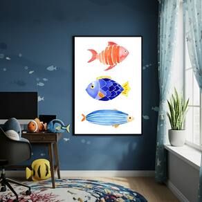 Quadro Decorativo Peixes Coloridos 70x50cm Mold Preta