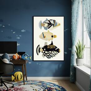Quadro Decorativo Peixes Diferenciados 70x50cm Mold Branca