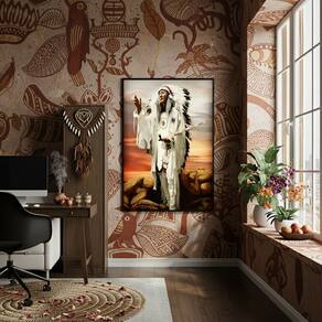 Quadro Decorativo Pena Branca Caboclo - 70x50cm - Cor: Moldura Branca