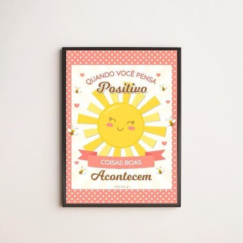 Quadro decorativo pensamento positivo 45x34cm - com vidro Moldura: madeira preta Informações do produto tire todas as suas dúvidas no descritivo abaixo: decoração para quarto, sala, cozinha, escritório, área gourmet e muito mais. Chega de paredes vazias medidas - cada peça tem 45x34cm a3 . Material do papel - papel fotográfico brilhante de altíssima resolução acabamento - todos os quadros são acompanhados de vidro para proteção da imagem. - moldura em madeira maciça na cor preta e pendurador . - os quadros são embalados de forma segura com plástico bolha com camada dupla de acordo com o tamanho dos quadros. - de 3 meses. Meu quadro chegou. Como posso fixá-lo Você precisa apenas de um martelo e um prego, pois os quadros já vão acompanhados de penduradores. Esta é a forma mais indicada. Como posso limpar meu quadro A limpeza é feita como um móvel comum da sua casa. Apenas um pano seco ou espanador são suficientes para tal