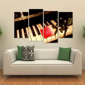 Quadro Decorativo Piano E Rosa Mosaico Em Tecido 4 Peças 1