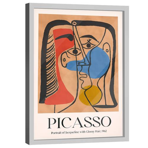 Quadro Decorativo Picasso Portrait Of Jaqueline With Glossy Hair Moldura Branca e Vidro - 84x54cm -