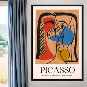 Quadro Decorativo Picasso Portrait Of Jaqueline With Glossy Hair Moldura Branca - 84x54cm -