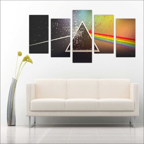 Quadro mosaico com 5 peças Tamanho total 127 cm X 63 cm colocado na parede com espaçamento de 3 cm entre cada peça. Tamanhos Específico Dos Quadros 4 quadros 23 cm x 46 cm 1 quadro 23 cm x 63 cm Qualidade Do Quadro / Impressão e Acabamento - Qualidade Fotográfica Da Imagem. - Material: Quadros impressos em adesivo com qualidade fotográfica, aplicado em MDF com espessura de 12 mm, com acabamentos laterais em preto fosco. - Quadro pronto para colocação na parede. Conteúdo da embalagem: Quadro completo com 5 peças. Ean: 7599681869660